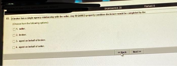 Any REQUIRED property condition disclosure would be completed by the A. View the full answer. The agent will sit on only one side of the transaction.